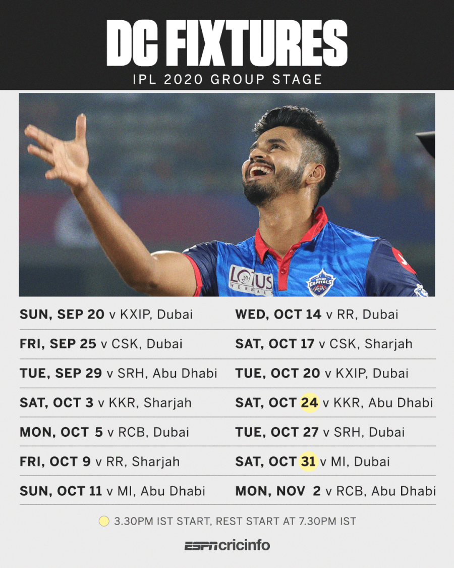 Dc Schedule Ipl - Indian premier league (ipl) 2020 tournament has been rescheduled and it will be played in uae from september 19, 2020, to 8 november 2020.