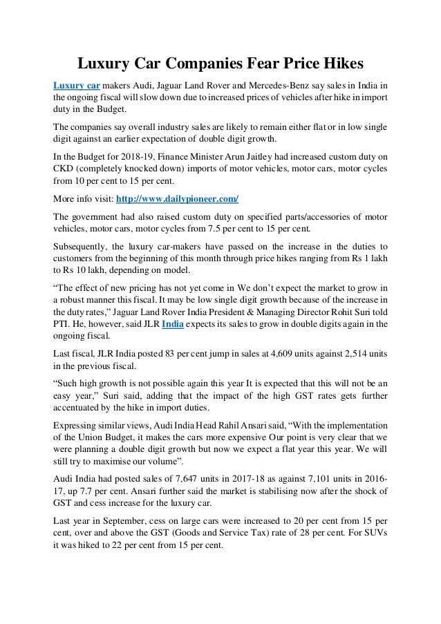 Surcharge On Taxes On Luxury Cars In India To Go Up Hints Nirmala Sitharaman Custom duty is a duty levied on importation of goods into india and exportation of goods out of india.